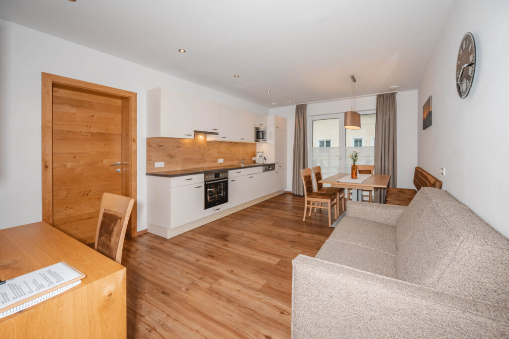 The cosy apartment in our newly-built chalet offers the highest standard of comfort for your holiday over 58 m2. Spend an enjoyable holiday here as a couple, with your family or friends. You’ll have no trouble unwinding in our Apartment Type A offering a wide range of facilities, ideal layout and loving details. The large balcony with seating is perfect for relaxing. On request we can deliver fresh bread and rolls to your door every morning – the perfect start to an unforgettable day. Take advantage of the numerous inclusives and the popular location for your summer or winter vacation in Radstadt, Salzburger Land.